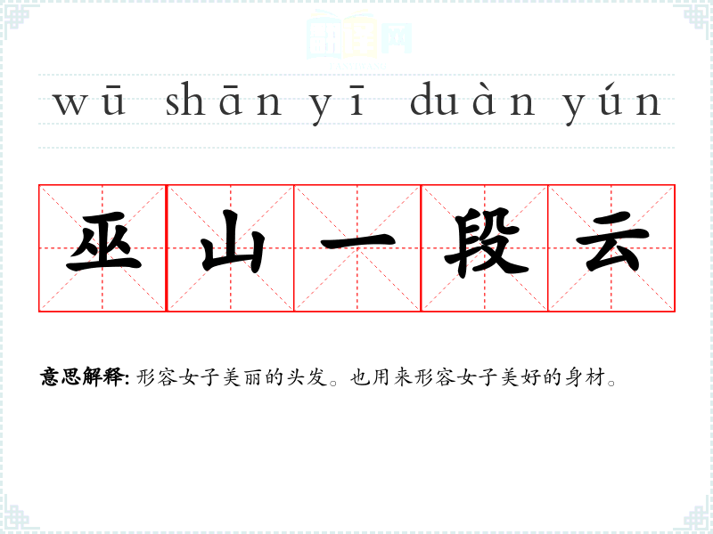 | 巫山一段云 | 形容女子美丽的头发。也用来形容女子美好的身材。 |