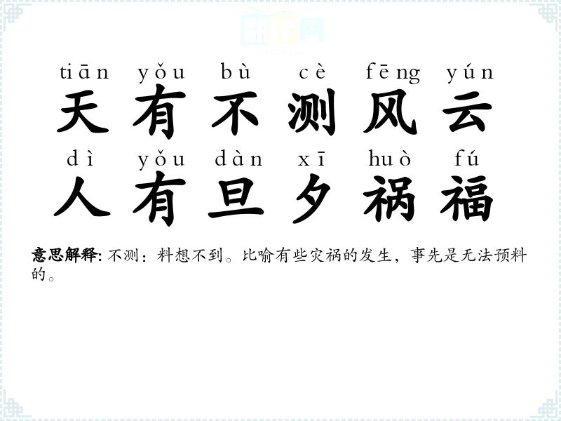 旦:早晨;夕:晚上。灭亡只是早晚的事情。 |