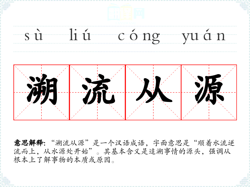 - “追本溯源”:与“溯流从源”意思相近,强调追寻事物的本源。