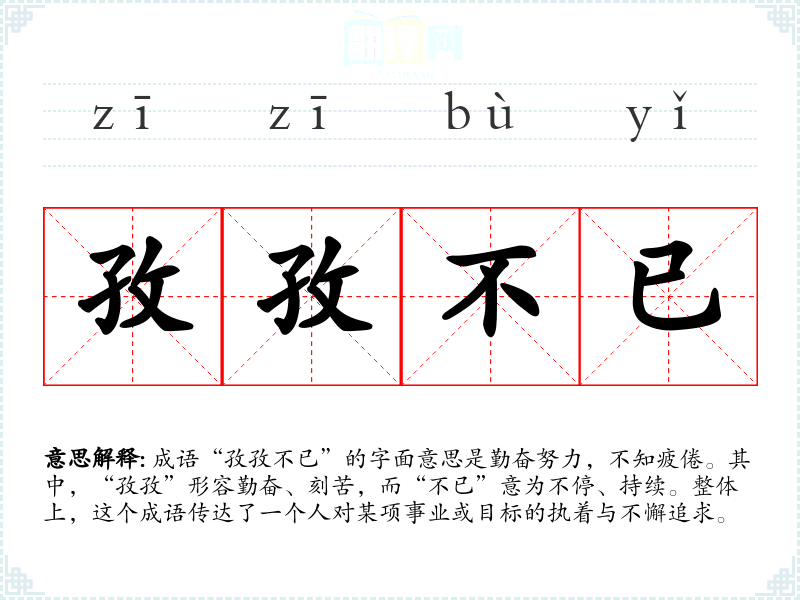 | 孜孜不懈 | 勤勉努力,毫不懈怠。 |