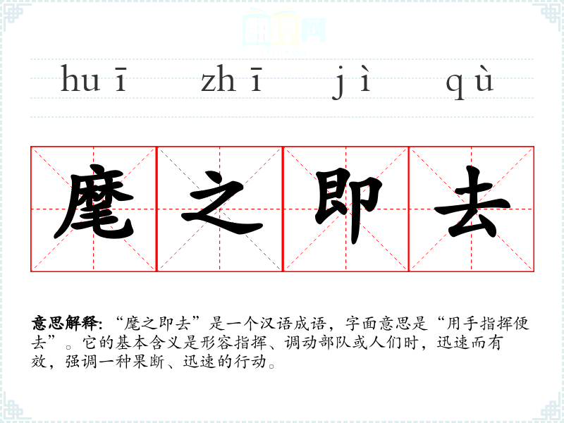 “麾之即去”是一个汉语成语,字面意思是“用手指挥便去”。它的基本含义是形容指挥、调动部队或人们时,迅速而有效,强调一种果断、迅速的行动。