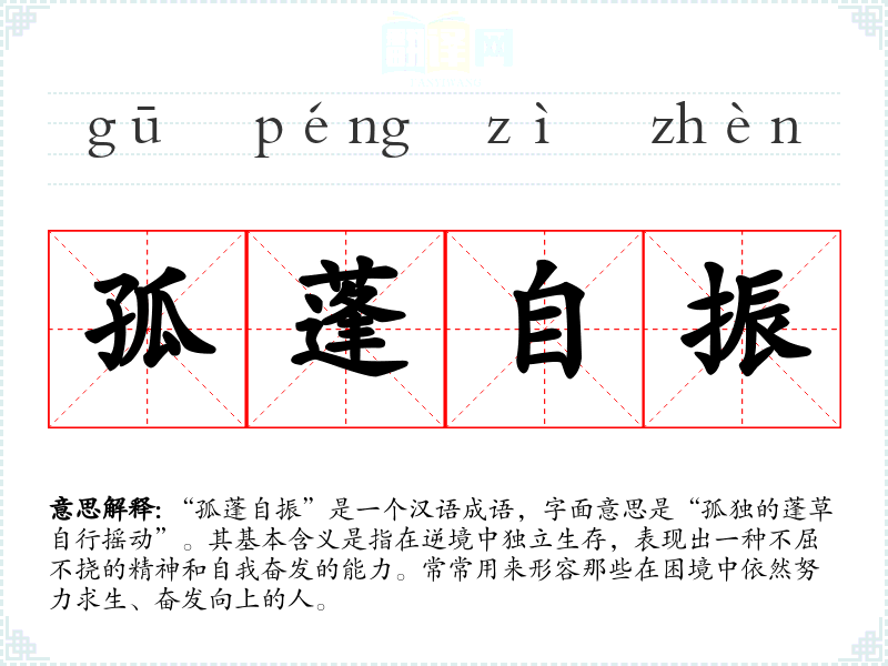 在传统文化中,强调个人的独立性与自我奋发的精神。“孤蓬自振”所表现的奋斗精神与“自力更生”相辅相成,反映了人在历史长河中面对困境时的坚韧态度。在现代社会,尤其在面对生活压力和职业挑战时,这一成语依然具有重要的启示意义。