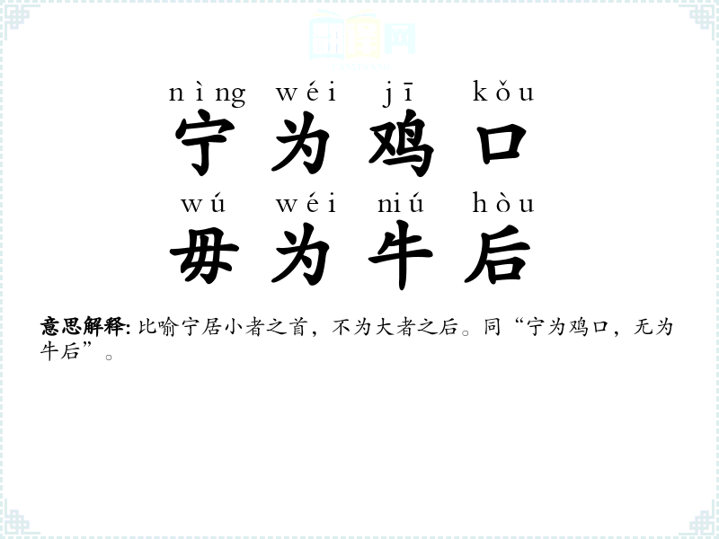- 宁为鸡口,无为牛后(意思解释)