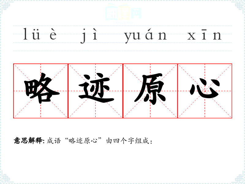 “略迹原心”这个成语并没有明确的历史典故或著名文学出处,但它的构造反映了**传统文化中对内心真实情感的重视。在古代文学中,很多作品强调表象与内心的关系,说明通过细微的观察可以理解他人的真实想法。