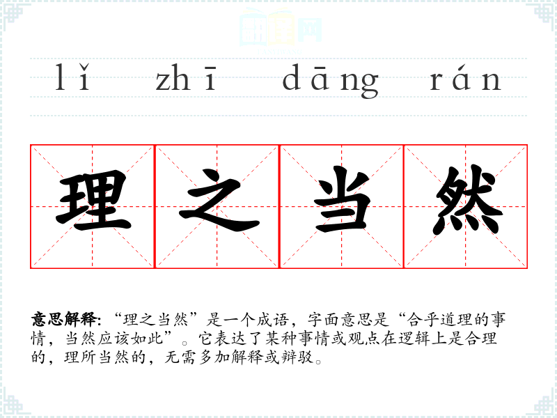 | 理固当然 | 理:道理;当然:应该这样。按道理应当这样。 |
