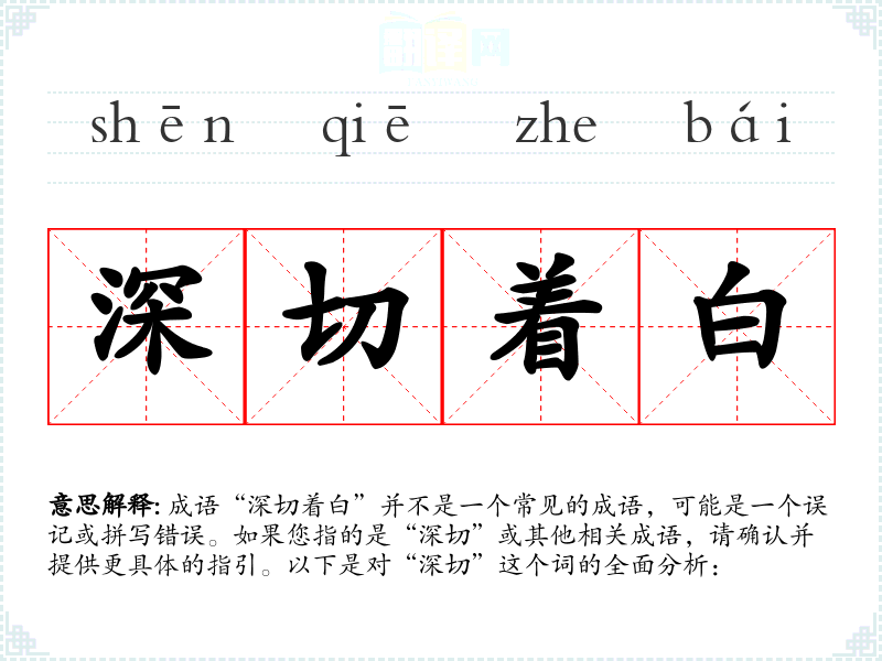 成语“深切着白”并不是一个常见的成语,可能是一个误记或拼写错误。如果您指的是“深切”或其他相关成语,请确认并提供更具体的指引。以下是对“深切”这个词的全面分析: