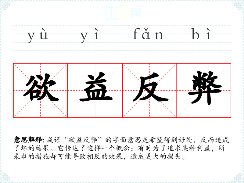 - 演讲与辩论:在准备论证某一观点时,使用“欲益反弊”可以强调一项政策或措施的潜在问题,提醒听众谨慎评估。
