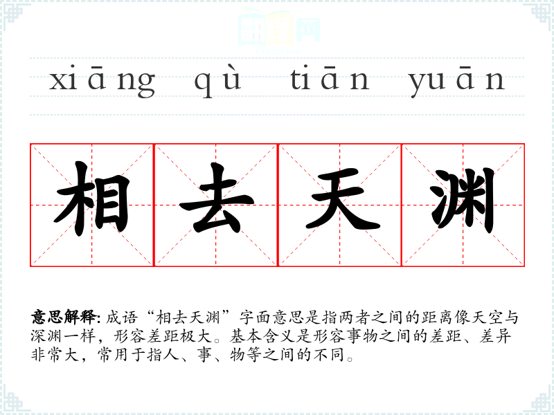 | 差若天渊 | 差:不同;天渊:天和深渊。比喻差别极大。 |