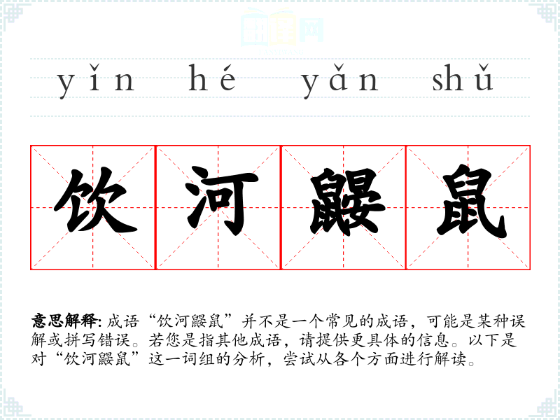 成语“饮河鼹鼠”并不是一个常见的成语,可能是某种误解或拼写错误。若您是指其他成语,请提供更具体的信息。以下是对“饮河鼹鼠”这一词组的分析,尝试从各个方面进行解读。