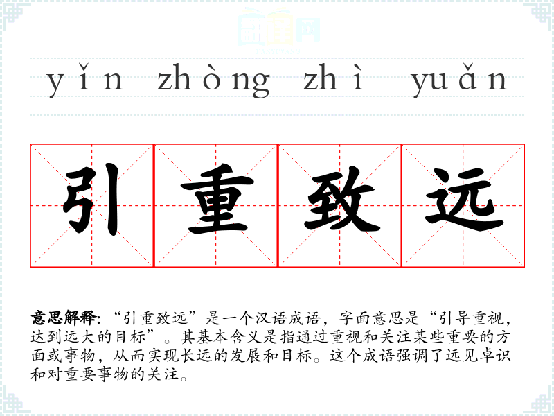 - 日常对话:在讨论工作、学*或生活规划时,可以提到“引重致远”来表达重视长远目标。