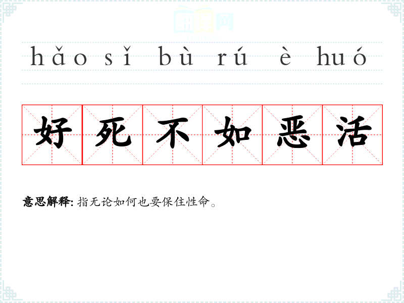 | 好死不如恶活 | 指无论如何也要保住性命。 |