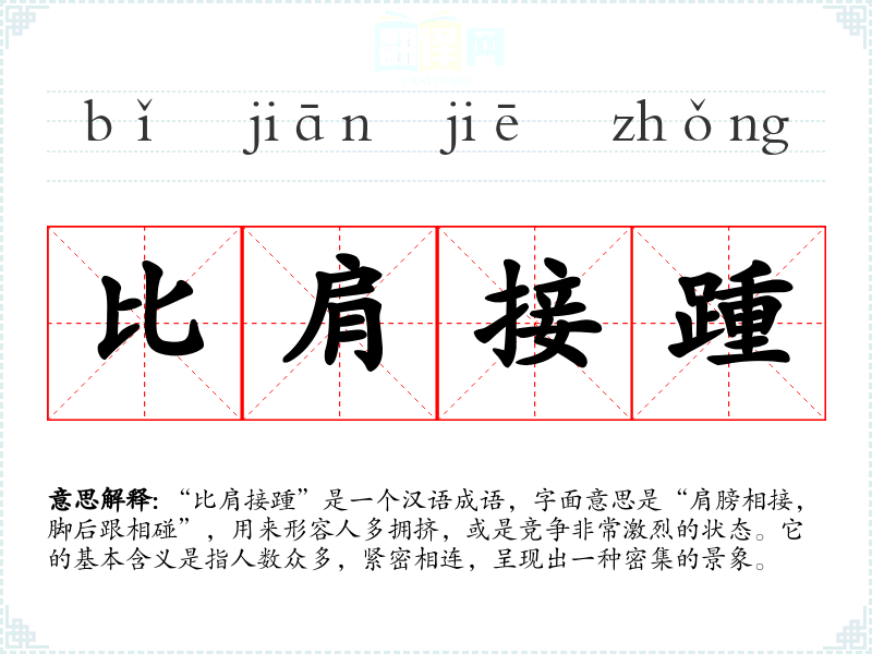 “比肩接踵”是一个汉语成语,字面意思是“肩膀相接,脚后跟相碰”,用来形容人多拥挤,或是竞争非常激烈的状态。它的基本含义是指人数众多,紧密相连,呈现出一种密集的景象。
