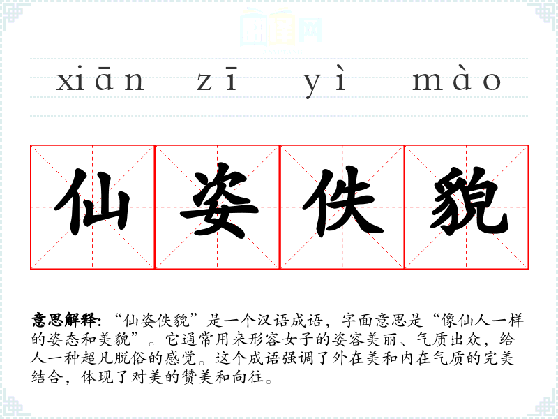在**传统文化中,女性的美丽与气质被高度重视,尤其在古代,仙女的形象常常被用来象征完美的女性特质。“仙姿佚貌”不仅体现了对美的赞美,也反映了人们对理想女性形象的追求。现代社会中,这个成语依然适用,常用于形容现代女性的优雅与魅力。