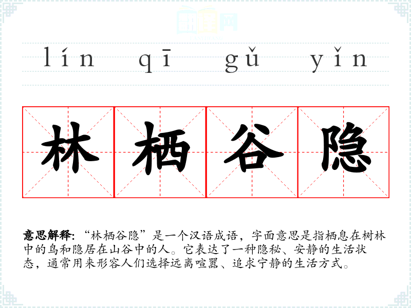 通过对“林栖谷隐”的学,我意识到这一成语不仅仅是对隐居生活的描绘,更是一种生活理念。它在现代生活中依然具有重要意义,提醒我们在快节奏的生活中寻找内心的宁静与和谐。这种理解对我在语言学和表达中提供了丰富的视角,让我更好地欣赏传统文化的深邃与优雅。