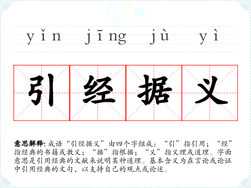 | 引经据义 | 引:援引;据:依据。引用经典书籍作为论证的依据。 |