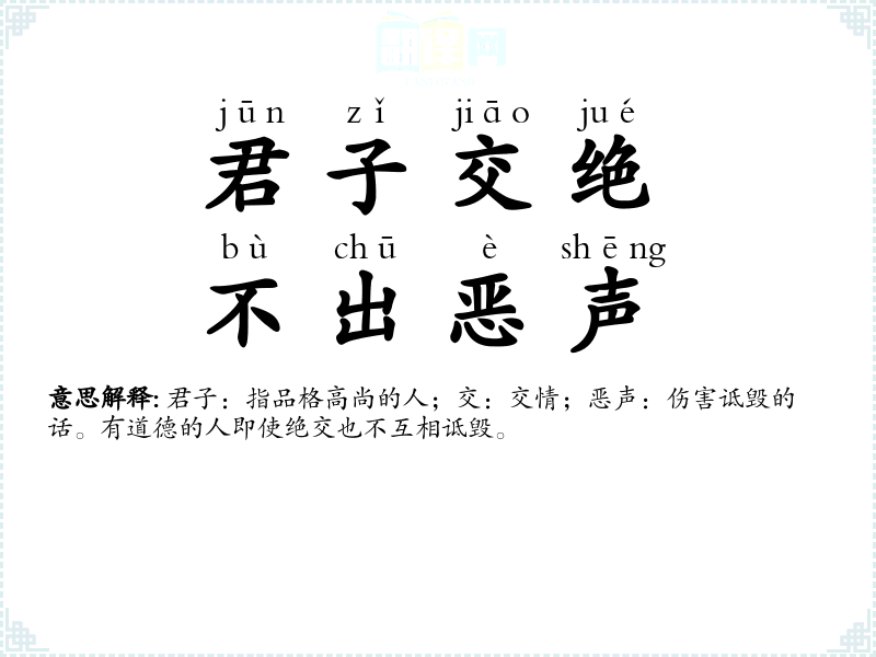 君子:指品格高尚的人;究:追究;既往:已经过去的事情。道德高尚的人不追究已过去的事情。 |