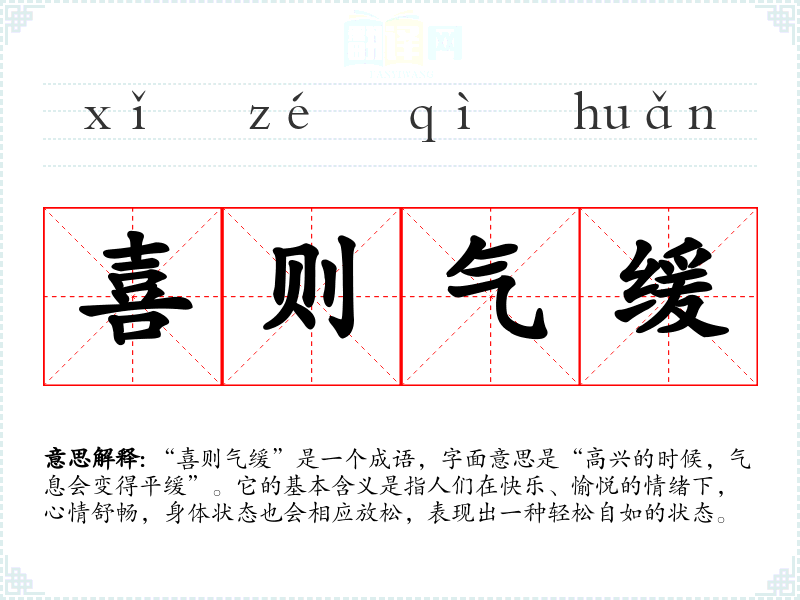 在**传统文化中,情绪与身体健康的关系被高度重视。古代中医理论中,认为情绪的波动会直接影响气血的流动,进而影响人的健康。因此,“喜则气缓”不仅是一句成语,更是人们调节情绪、维护健康的一种哲学理念。在现代社会中,人们的生活节奏加快,压力增大,这个成语提醒我们要重视情绪管理,保持愉快的心情。
