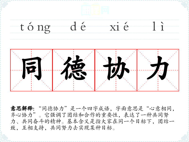 | 同德协力 | 为同一目标而共同尽力。 |