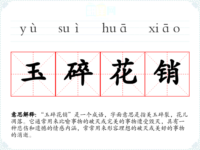- 反义成语:百折不挠、坚如磐石,强调事物的坚固与持久,正好与“玉碎花销”的含义相对。