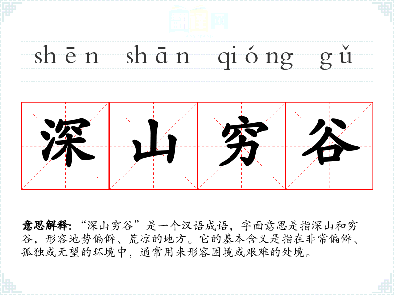 该成语的具体来源不详,但可以追溯到古代文人对自然环境的描绘。在**古代诗词中,常常会出现对深山和穷谷的描写,以表达孤独、凄凉或困境的情感。例如,许多文人墨客在游历深山时常常感慨孤独和无奈,这种情感逐渐演变成了成语。