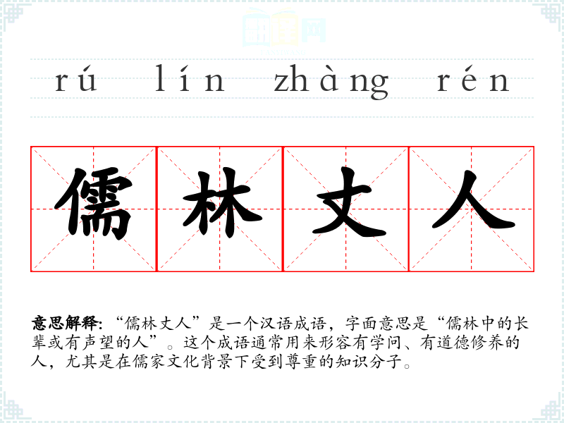 “儒林丈人”是一个汉语成语,字面意思是“儒林中的长辈或有声望的人”。这个成语通常用来形容有学问、有道德修养的人,尤其是在儒家文化背景下受到尊重的知识分子。