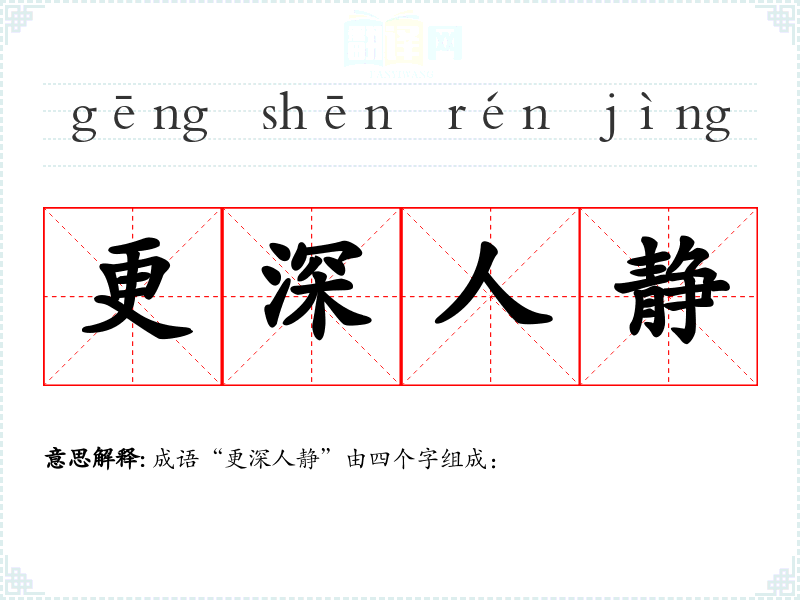 成语“更深人静”由四个字组成: