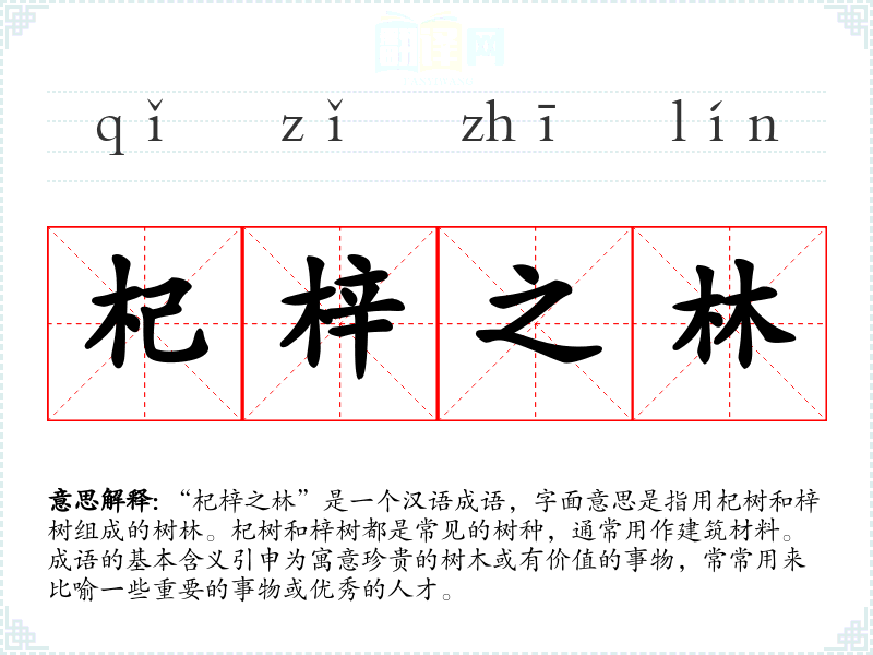 通过对“杞梓之林”的学,我深刻认识到语言的深度与丰富性。这个成语不仅仅是对树木的描写,更是对人才的尊重和珍视。在日常交流中,恰当地使用成语,可以提升语言的表达力和感染力,对我的语言学和表达能力都有很大的促进作用。
