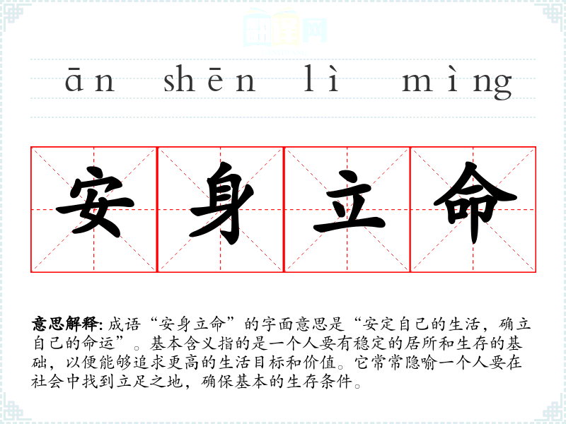 - 安身立命是人生的第一步,只有拥有了基本的生活保障,才能追求更高的理想。