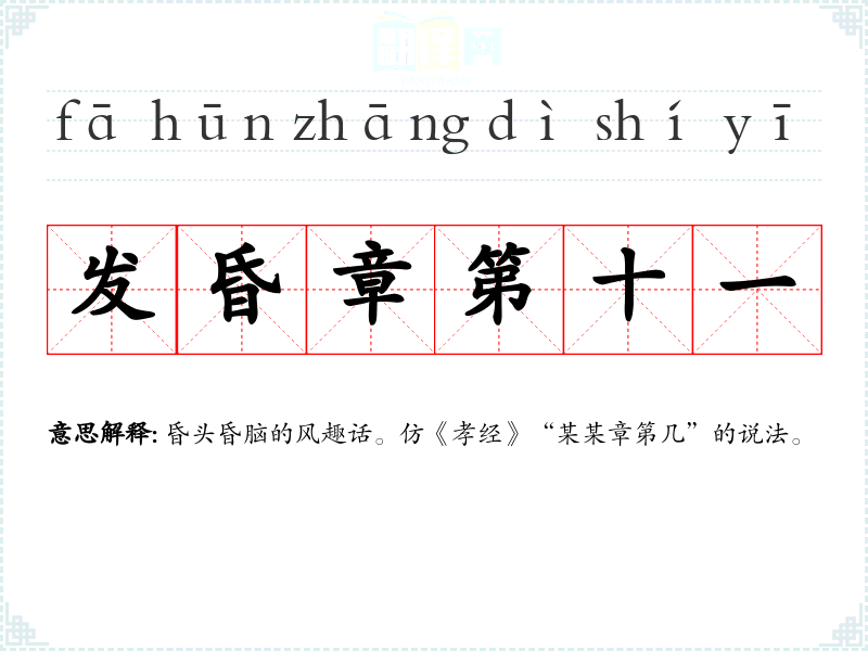 昏头昏脑的风趣话。仿《孝经》“某某章第几”的说法。 |