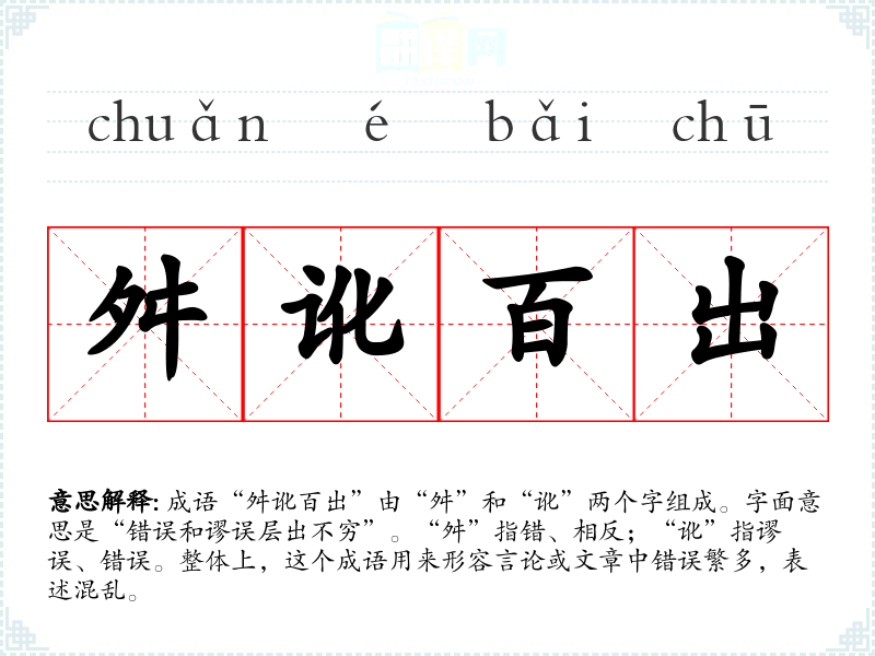 - 同义成语:错误百出、谬误丛生