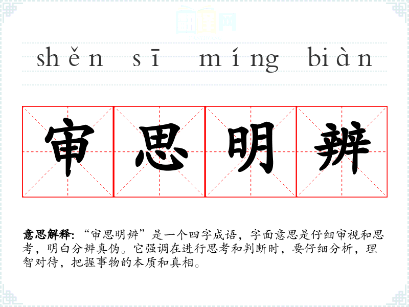 - 演讲:在演讲过程中,讲者可以引用“审思明辨”强调理性思考的重要性,尤其是在决策时。