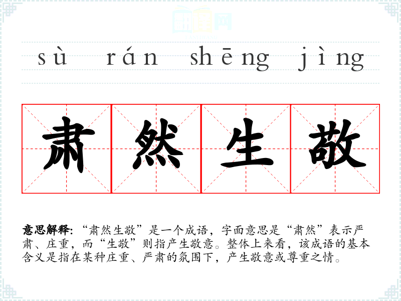 | 肃然生敬 | 形容产生严肃敬仰的感情。同“肃然起敬”。 |