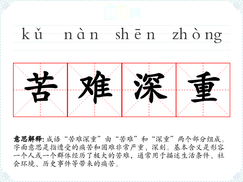 在生活中,我曾参加过一次慈善活动,帮助那些生活在贫困线以下的家庭。在活动中,我们常常提到这些家庭的“苦难深重”,以此激励更多人参与到帮助他们的行动中。