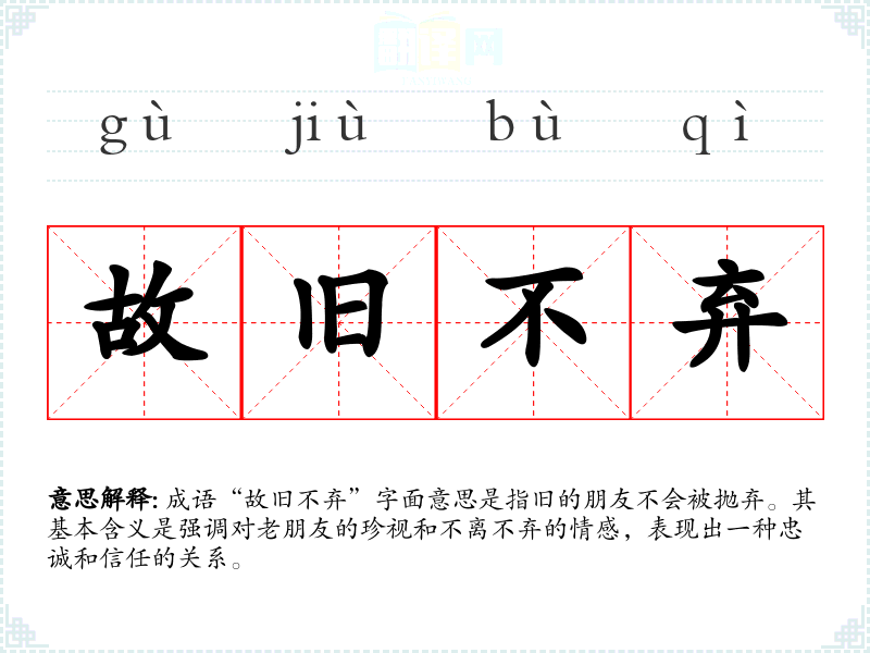 成语“故旧不弃”字面意思是指旧的朋友不会被抛弃。其基本含义是强调对老朋友的珍视和不离不弃的情感,表现出一种忠诚和信任的关系。