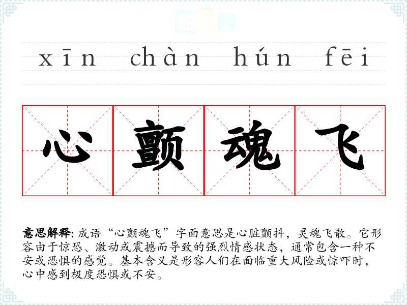 - 反义成语:心安理得、泰然自若。前者表示内心平静,理直气壮;后者形容人在困境中保持冷静,完全相反于“心颤魂飞”的情感状态。