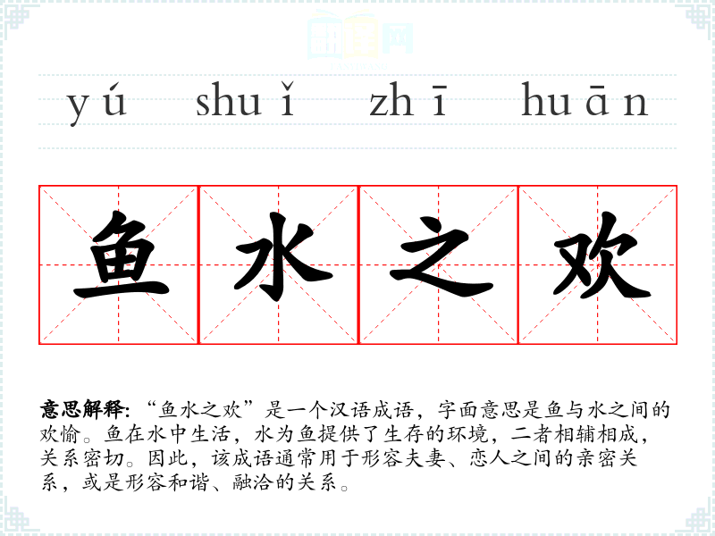通过对“鱼水之欢”的学*,我更加理解了亲密关系的重要性和维护方法。这一成语不仅丰富了我的语言表达,也提醒我珍惜身边的人,努力维护和谐的关系。