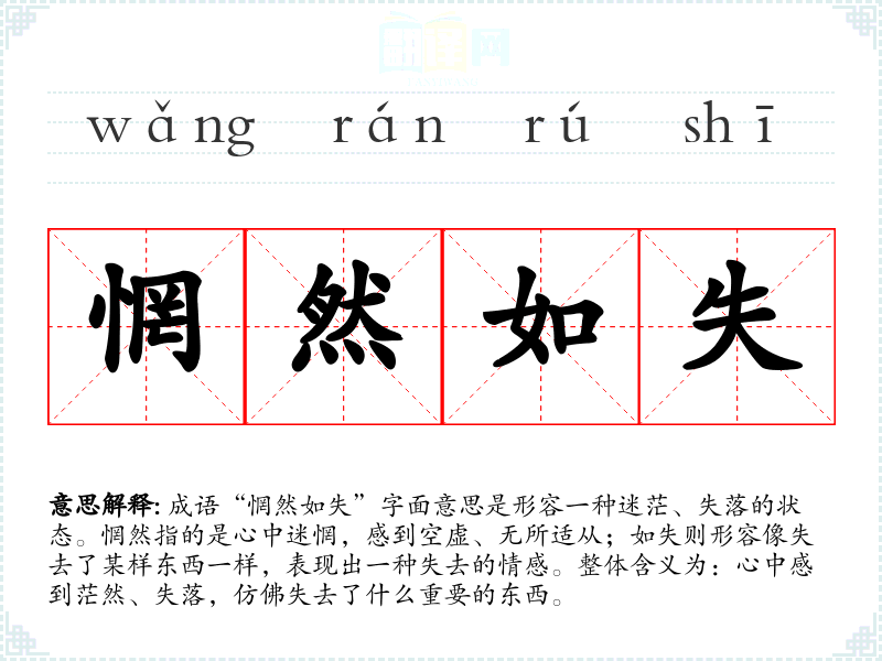 “惘然如失”不仅是一个描述心情的成语,它也在提醒我们每个人在生活中都可能经历迷茫。理解这个成语能帮助我们更好地表达内心的情感,也能在交流中增进彼此的理解与共鸣。在语言学习和表达中,掌握这样的成语丰富了我们的表达方式,也让我们能够更加深入地洞察人类的情感与心理。