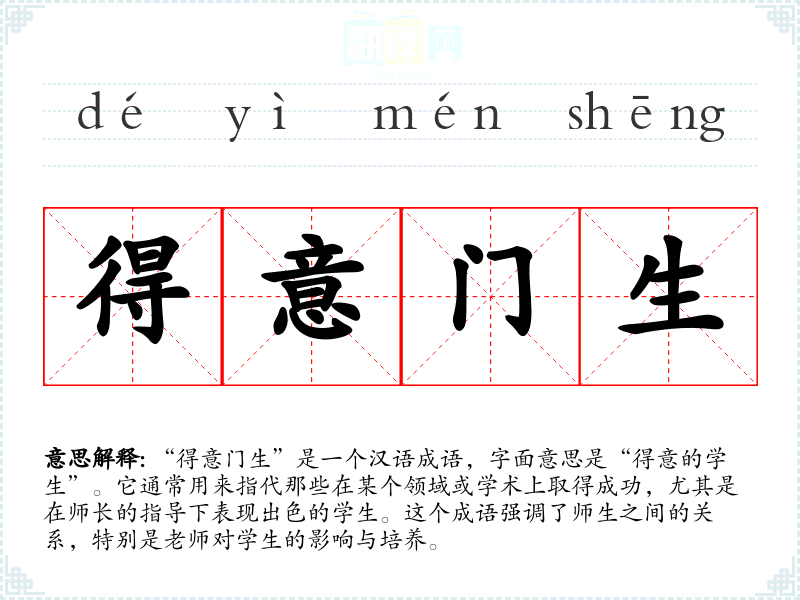 “得意门生”是一个汉语成语,字面意思是“得意的学生”。它通常用来指代那些在某个领域或学术上取得成功,尤其是在师长的指导下表现出色的学生。这个成语强调了师生之间的关系,特别是老师对学生的影响与培养。