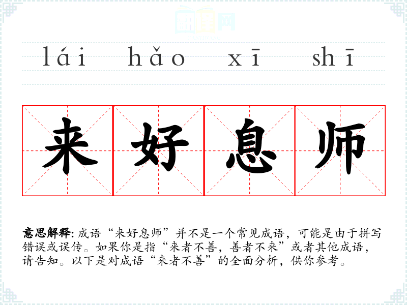 成语“来好息师”并不是一个常见成语,可能是由于拼写错误或误传。如果你是指“来者不善,善者不来”或者其他成语,请告知。以下是对成语“来者不善”的全面分析,供你参考。