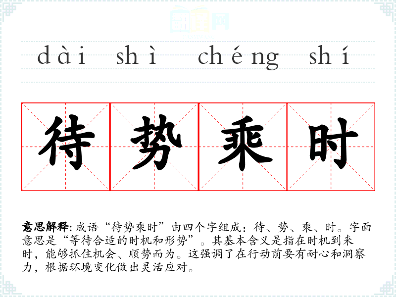 - 日常对话:朋友间讨论职业规划时,可能会提到“待势乘时”,以提醒彼此关注外部环境的变化。