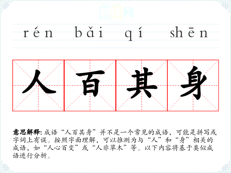 成语“人百其身”并不是一个常见的成语,可能是拼写或字词上有误。按照字面理解,可以推测为与“人”和“身”相关的成语,如“人心百变”或“人非草木”等。以下内容将基于类似成语进行分析。