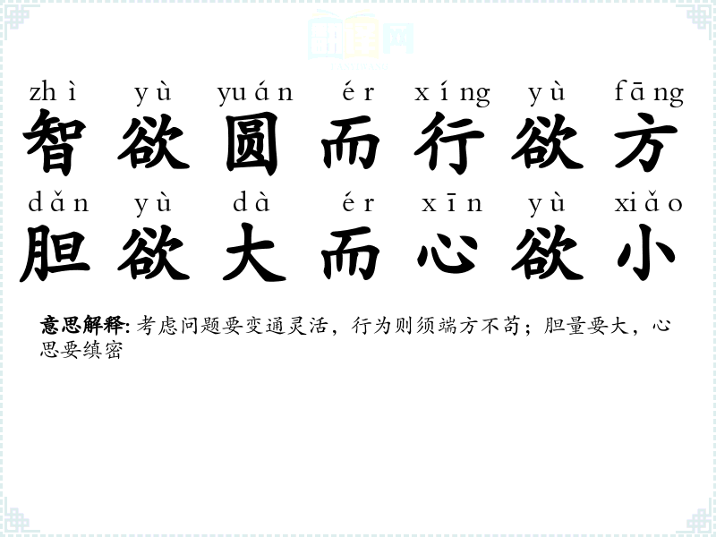 圆:圆满,周全;方:端正,不苟且。知识要广博周备,行事要方正不苟。 |