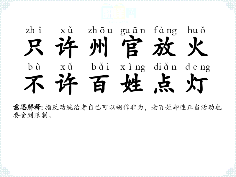 州官:一州的长官。指反动统治者自己可以胡作非为,老百姓没有正当活动的自由 |