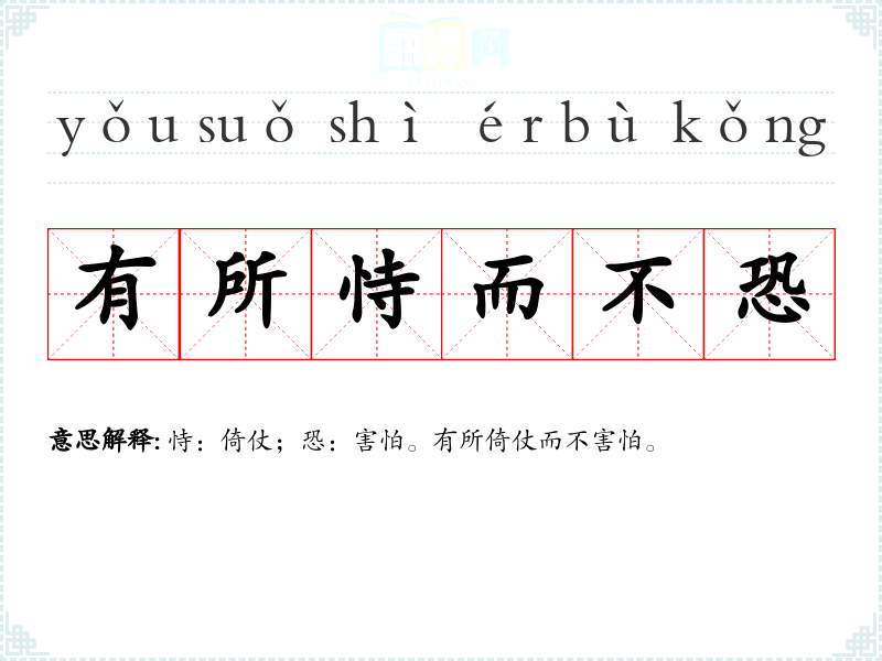 恃:倚仗;恐:害怕。有所倚仗而不害怕。
