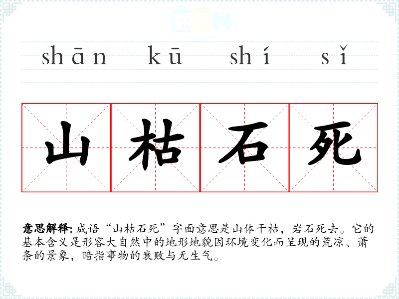 “山枯石死”并没有明确的历史典故或文献出处,但它可以被视作自然现象和环境变化的直接描述。可能源于古代文人对自然景观的观察和感悟,反映了对于生命、自然和人类生存环境的思考。