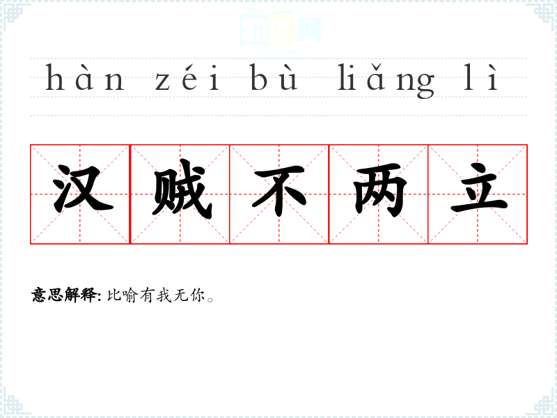 | 汉贼不两立 | 比喻有我无你。 |
