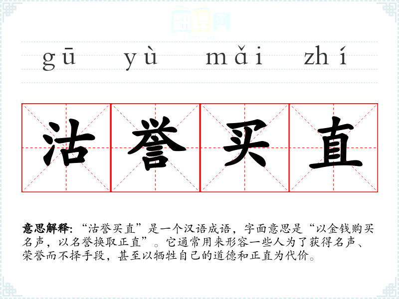 “沽誉买直”是一个汉语成语,字面意思是“以金钱购买名声,以名誉换取正直”。它通常用来形容一些人为了获得名声、荣誉而不择手段,甚至以牺牲自己的道德和正直为代价。