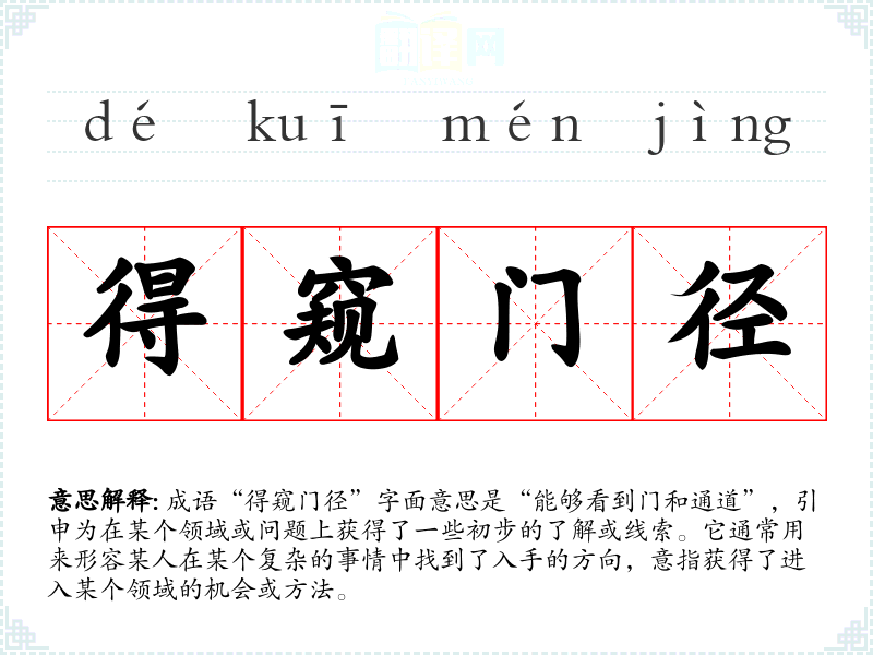 - 日常对话:在日常交流中,人们可能用这个成语来形容自己在学新知识时的收获,比如:“经过几天的学,我终于得窥门径,明白了这个复杂的数学问题。”
