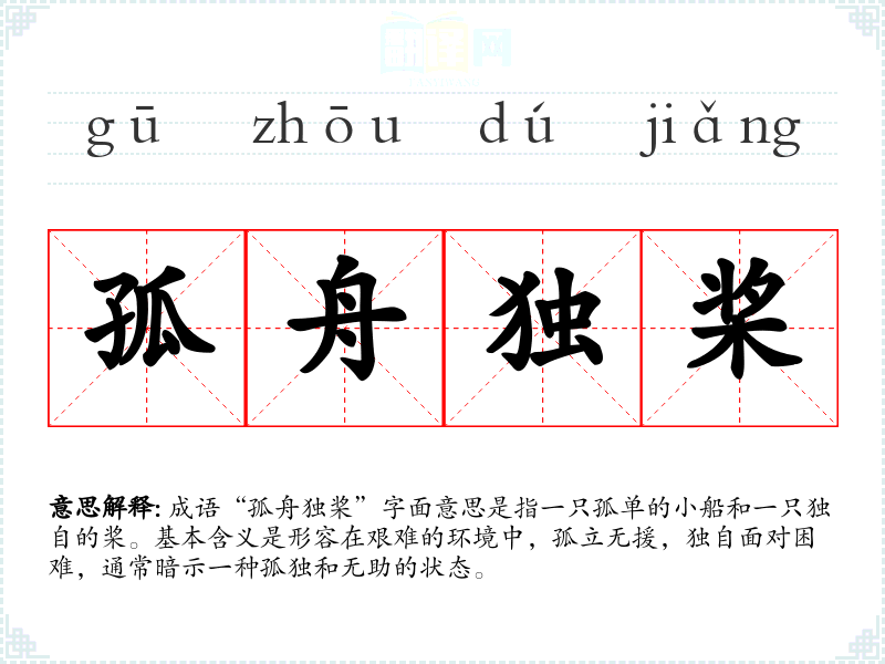 成语“孤舟独桨”字面意思是指一只孤单的小船和一只独自的桨。基本含义是形容在艰难的环境中,孤立无援,独自面对困难,通常暗示一种孤独和无助的状态。