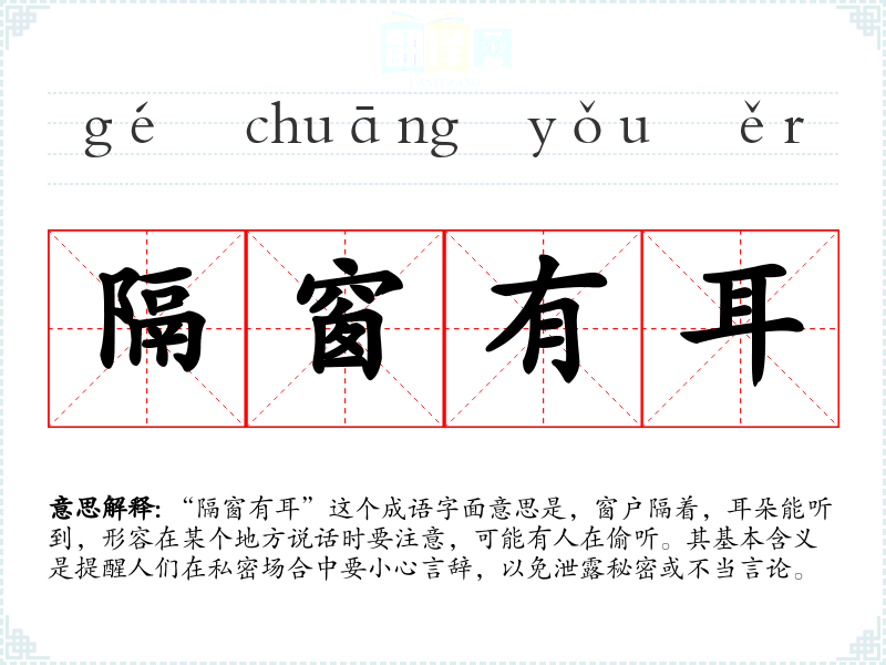 - “墙有耳”:与“隔窗有耳”意思相近,强调在某些场合要小心言辞。